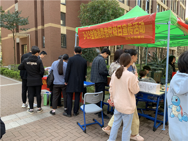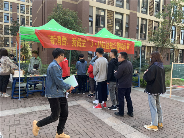 为保障师生在享受金融服务时更加明晰自身合法权益,强化金融风险防范意识,3月15日中午,我院学工部(学生处、团委)联合瓯海农商银行塘下支行,在校园内开展了以“新消费,我做主”为主题的3·15权益知识趣味问答暨金融知识进校园活动。