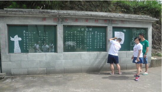 随后几天,实践队开始走进溪港乡街头巷尾,利用乡里的黑板、宣传栏和公告栏,开展“农村普法常识”宣传活动,图文并茂地展示司法诉讼、司法调解的过程。同时,实践队中有相关法律工作经验的同学,还对居民提出的法律问题进行了解答。实践队的活动,为当地群众解决了一些法律疑问,起到了一定的普法效果,得到了当地群众和地方领导的肯定。