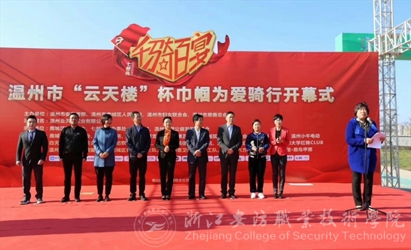 为热烈庆祝党的十九大胜利闭幕,贯彻落实“不忘初心跟党走、绿色骑行、展现自我、奉献爱心”的活动宗旨,树立温州市“绿色,健康,环保”的城市形象,2017年11月19日上午,温州市首届“云天楼”杯“千骑百宴”慈善骑行活动于七都岛隆重举行。本次活动由温州市委宣传部、温州市妇联、温州市慈善总会主办,温州市云天楼实业有限公司冠名,鹿城区慈善总会、七都街道办事处、云公益以及温州市微公益发展促进会联合承办。为做好本次活动的后勤安保志愿服务工作,主办方通过与我院团委对接,联系校青年志愿者协会招募了30名安保志愿者及15名骑行志愿者助力本次活动。