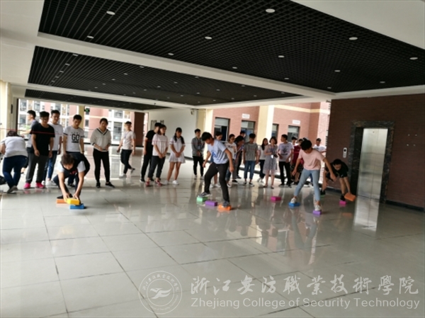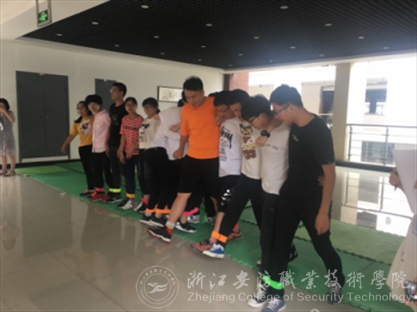 活动开始,大家先进行了抽签,确定比赛的顺序,然后依次进入场地进行比赛。首先,在教学楼二楼进行的是“阳光奔跑”,十人分成两组,将五人的腿两两绑在一起,组成一个团队,进行奔跑接力。比赛还未开始,大家都纷纷进行尝试,似乎一切都非常顺利,但当比赛正式开始后,有些人就乱了阵法,相反,又有些团队非常顺利地完成了比赛。接着,在三楼进行了“过河拆桥”比赛,这考验的是我们身体的协调性,同时技巧也是很重要的。有些团队之所以速度很快,这就离不开指挥者了,他就是整个团队的“领头羊”。